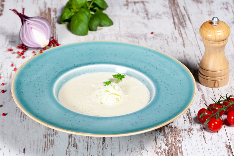 Karfiolkrémleves zöld olajjal, levesgyönggyel - Levesek